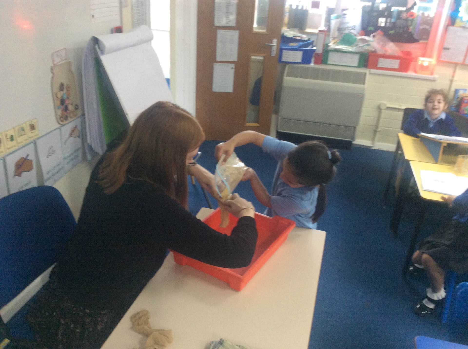 On Monday, we finished our end-of-unit Science experiment, exploring how the digestive system works. We used tights and other materials to recreate the journey of food through the body and even made our own “poo”!