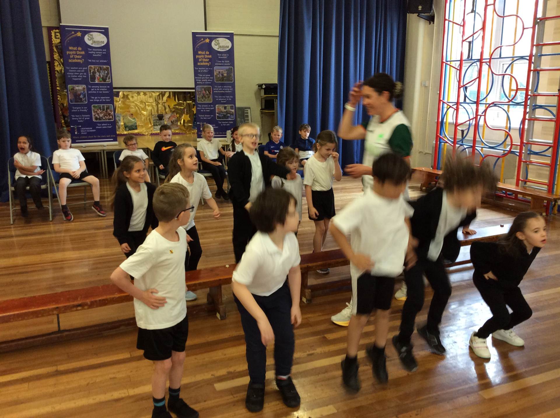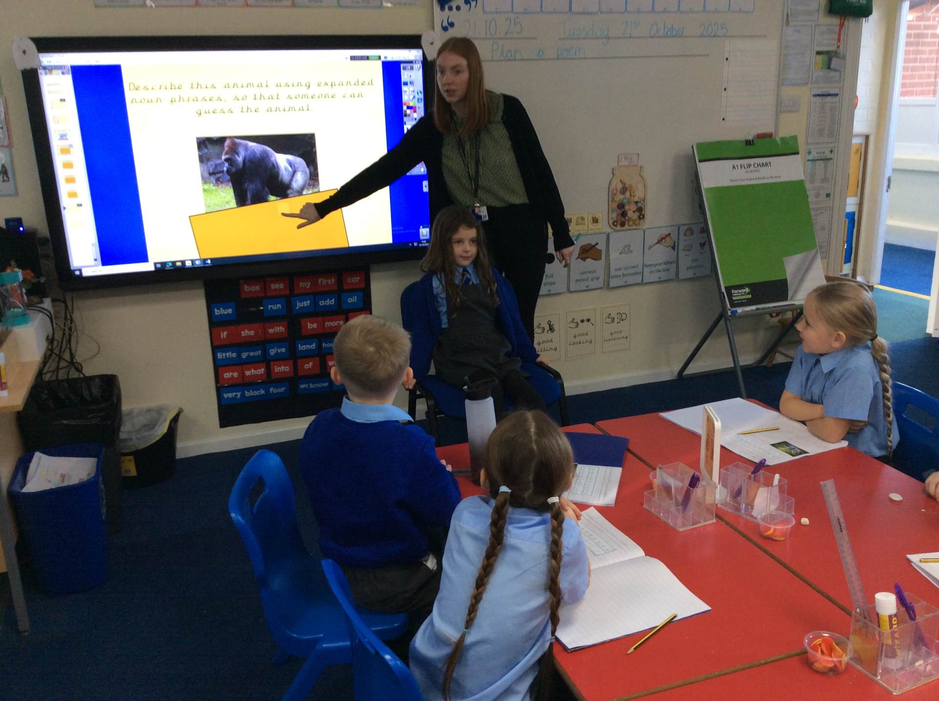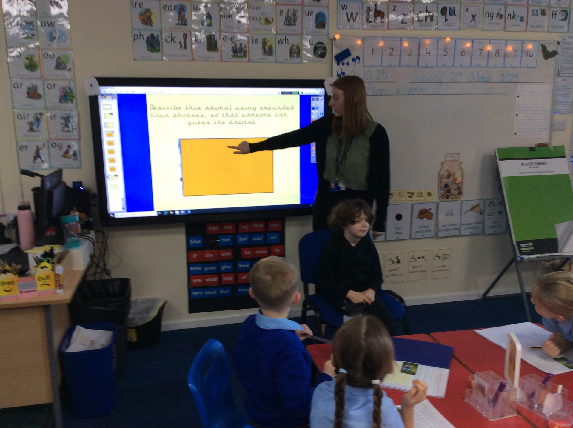 On Tuesday, we played a fun animal guessing game to practice using expanded noun phrases. We also had a special visit from an Olympic athlete who led us through an energetic fitness circuit – it was amazing to take part!