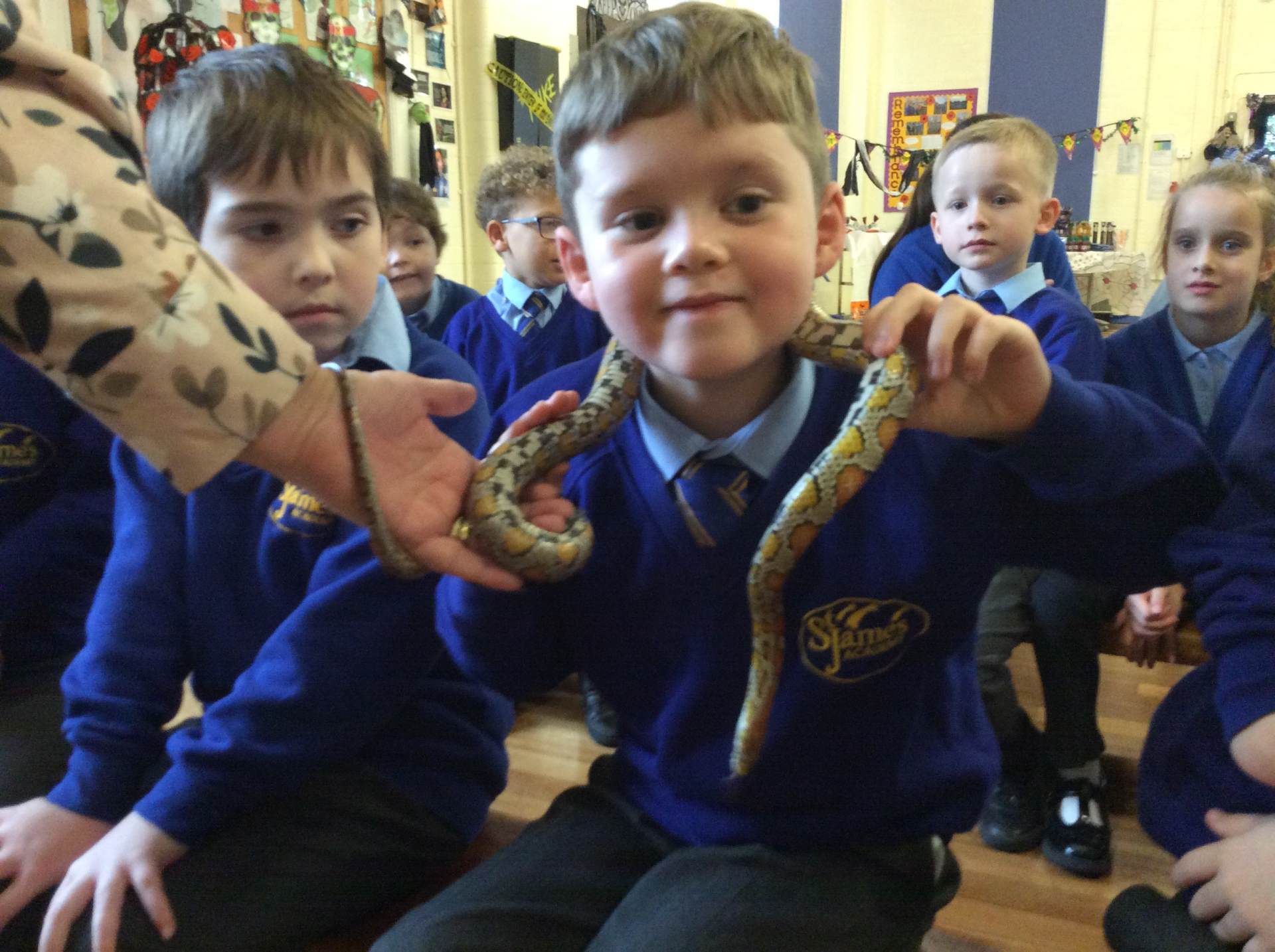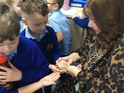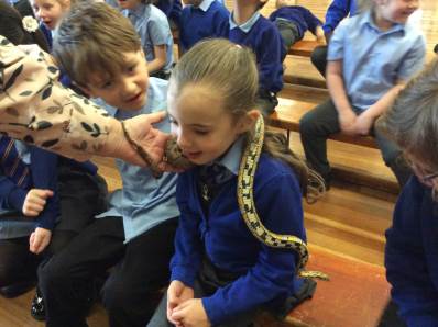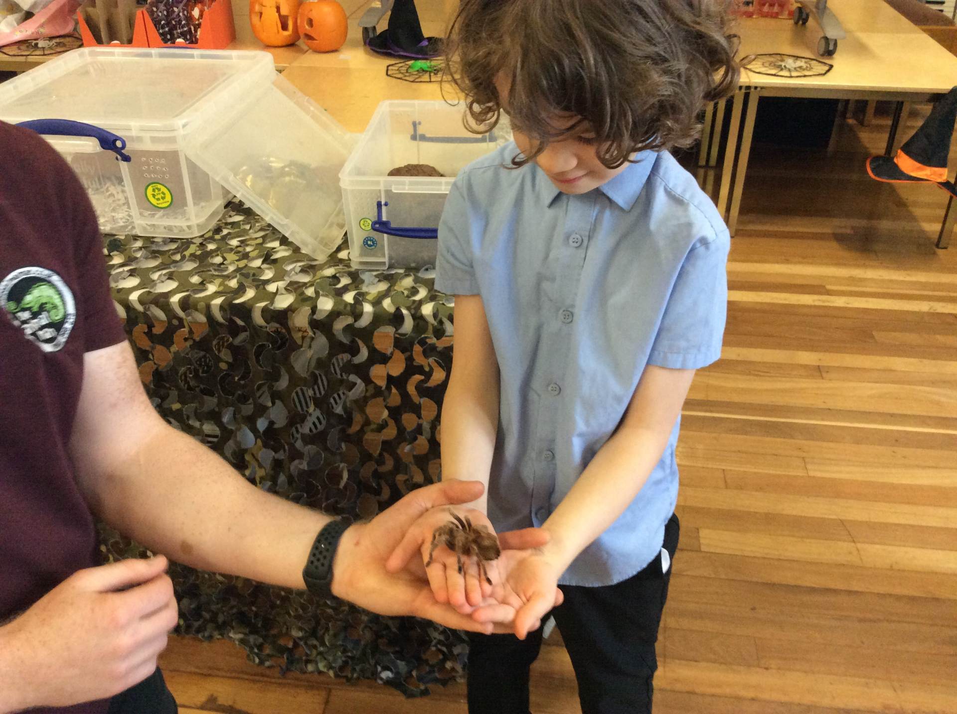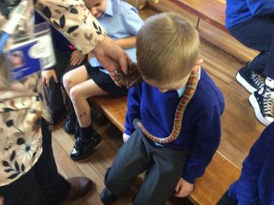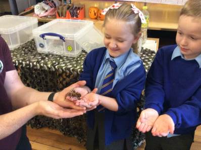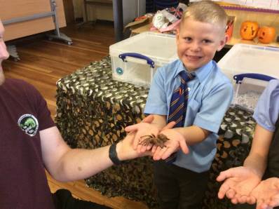 On Thursday, we explored rhythm and pitch in Music by copying patterns and working out the notes of a song on the glockenspiels. In the afternoon, we enjoyed our Good to be Green treat – meeting lots of fascinating creatures during a visit from the Animal Man! To end the day, everyone had a fantastic time dancing at the Halloween disco.