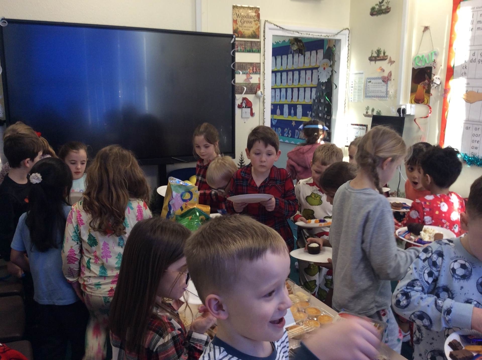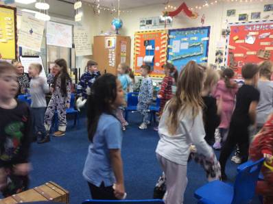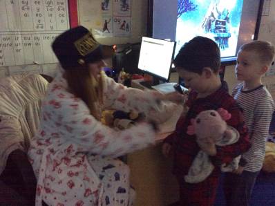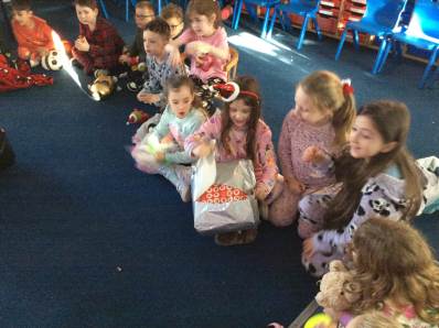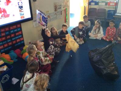 Tuesday brought our Good to Be Green treat, which turned into a magical Polar Express Day. The children came to school in their pyjamas and enjoyed watching the film with popcorn and fizzy drinks. In the afternoon, we continued the celebrations with our Christmas party, playing pass the parcel, musical chairs and enjoying lots of festive fun.