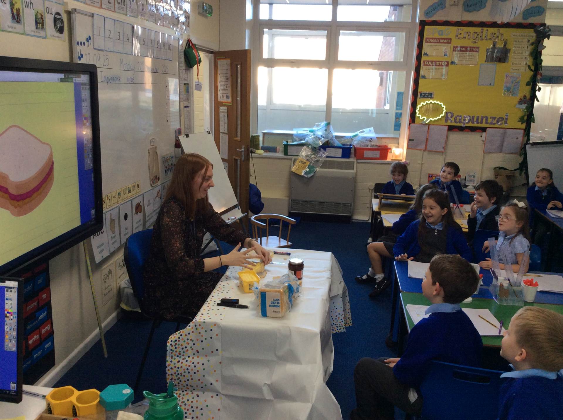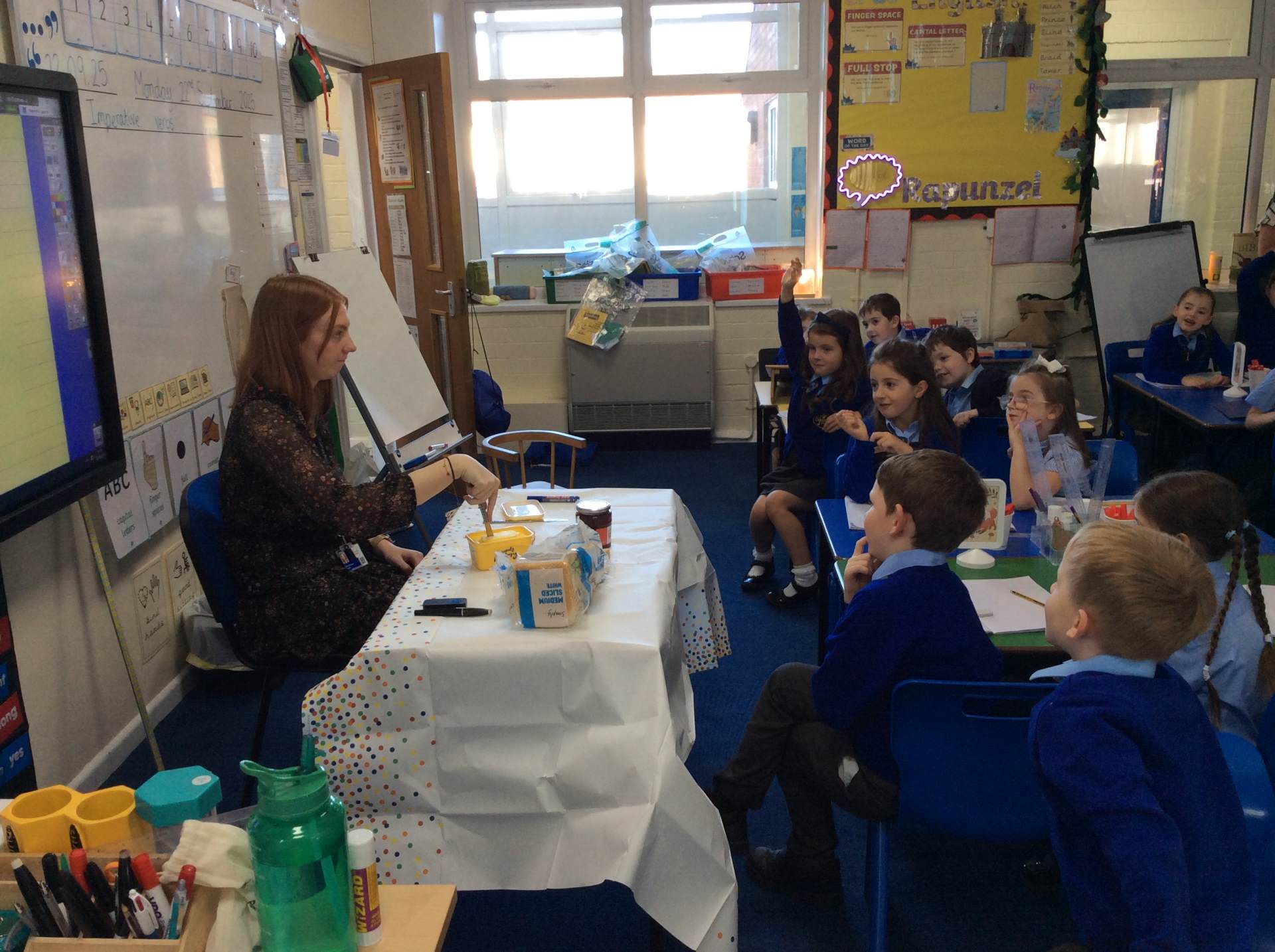 We started the week with lots of fun in English. On Monday, the children became the teachers and showed me (Miss Burrows) how to make a jam sandwich — because I had completely forgotten! They gave clear instructions, which I followed exactly… resulting in butter and jam being spread absolutely everywhere. It was very messy, but together we managed to create a delicious jam sandwich. Later in the week, the children used everything they’d learned to write their own set of instructions to help Rapunzel escape from her tower.