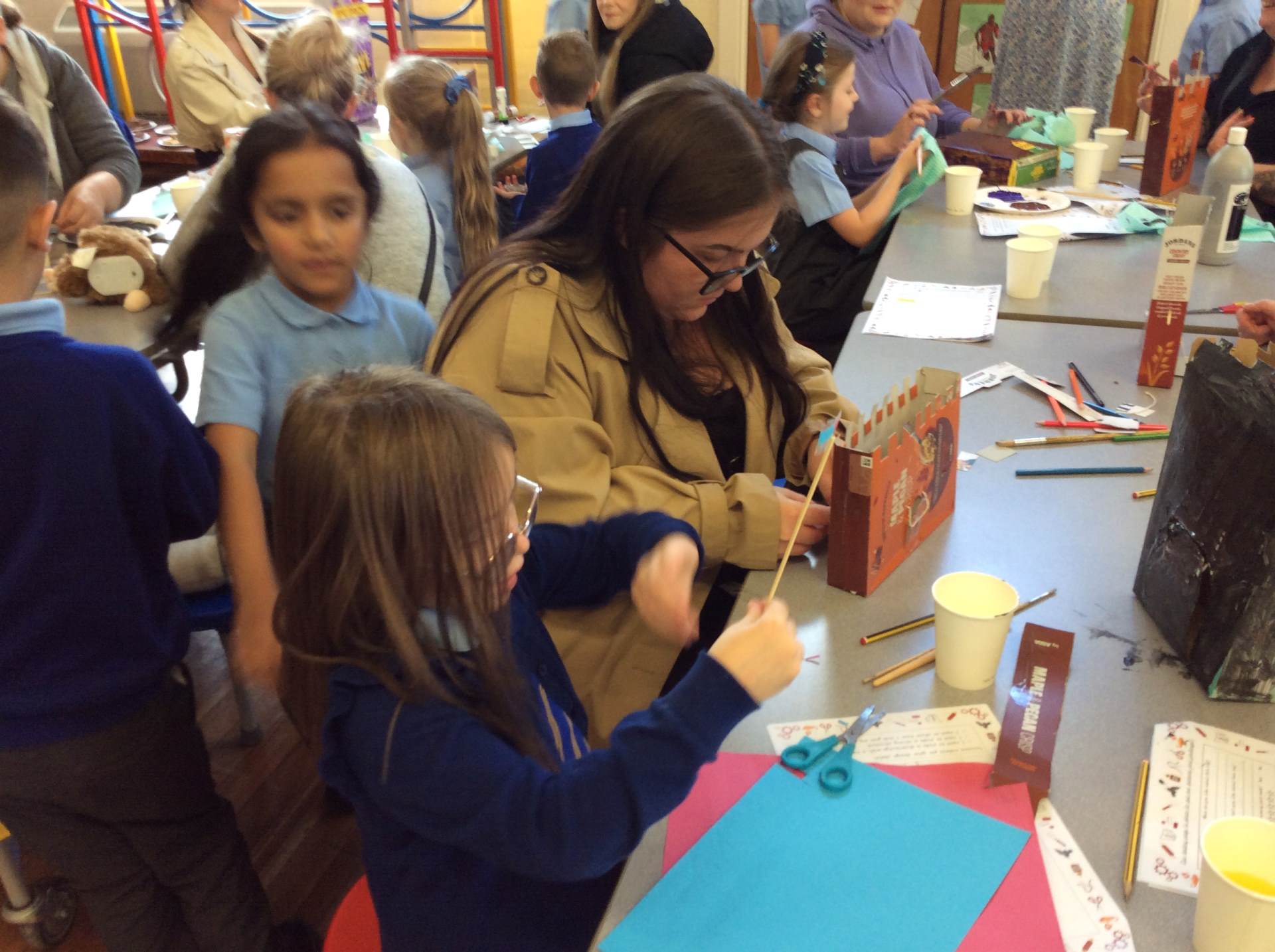 On Thursday, we invited our grown-ups into school for our exciting DT castle project. Everyone worked together to design and build a castle with a moving drawbridge. The classroom was filled with fun, laughter, and plenty of biscuits as children and adults got creative side by side. It was a wonderful afternoon, and the children were so proud to share their learning with their families.