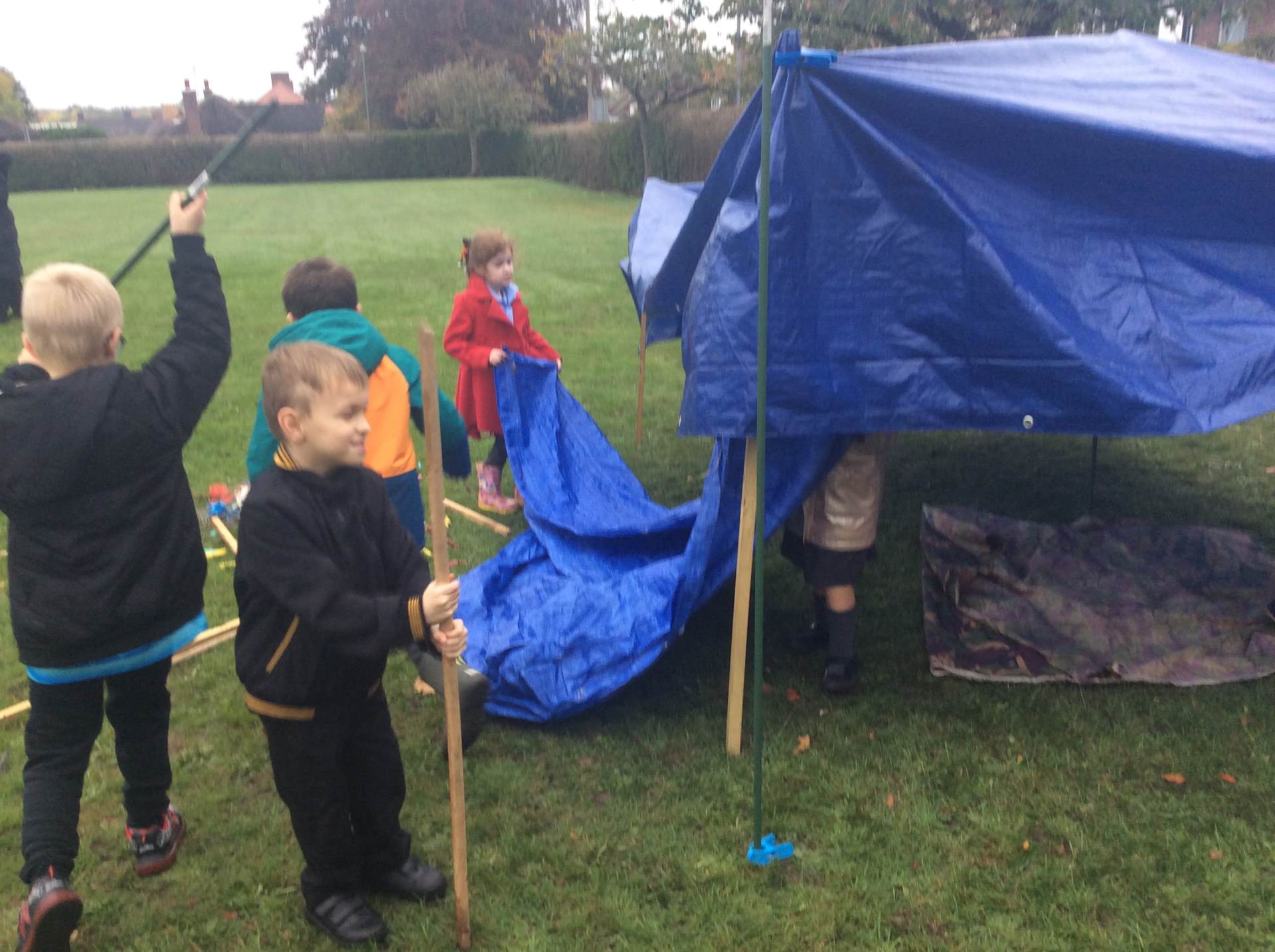 On Tuesday, we took part in Den Building, where we worked in teams to create our own dens using tarpaulins and a range of outdoor equipment.
