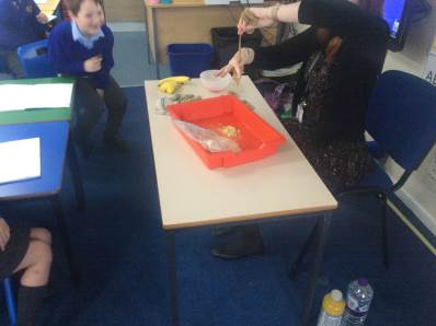 On Monday, we finished our end-of-unit Science experiment, exploring how the digestive system works. We used tights and other materials to recreate the journey of food through the body and even made our own “poo”!