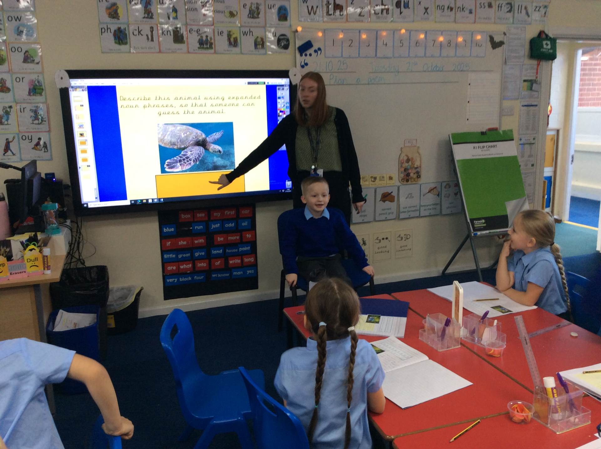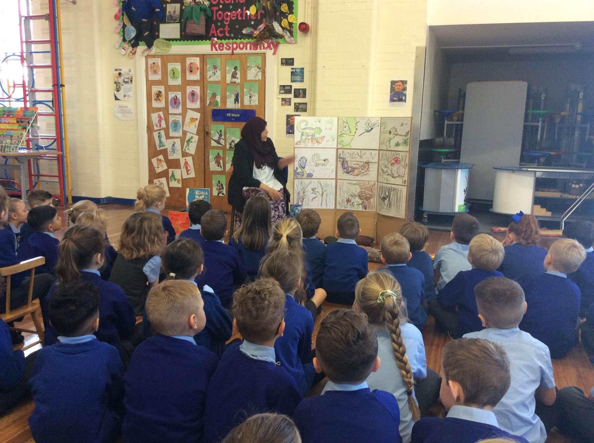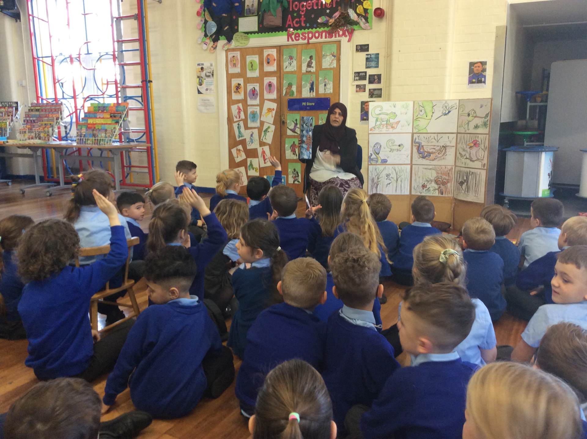 On Tuesday, we played a fun animal guessing game to practice using expanded noun phrases. We also had a special visit from an Olympic athlete who led us through an energetic fitness circuit – it was amazing to take part!