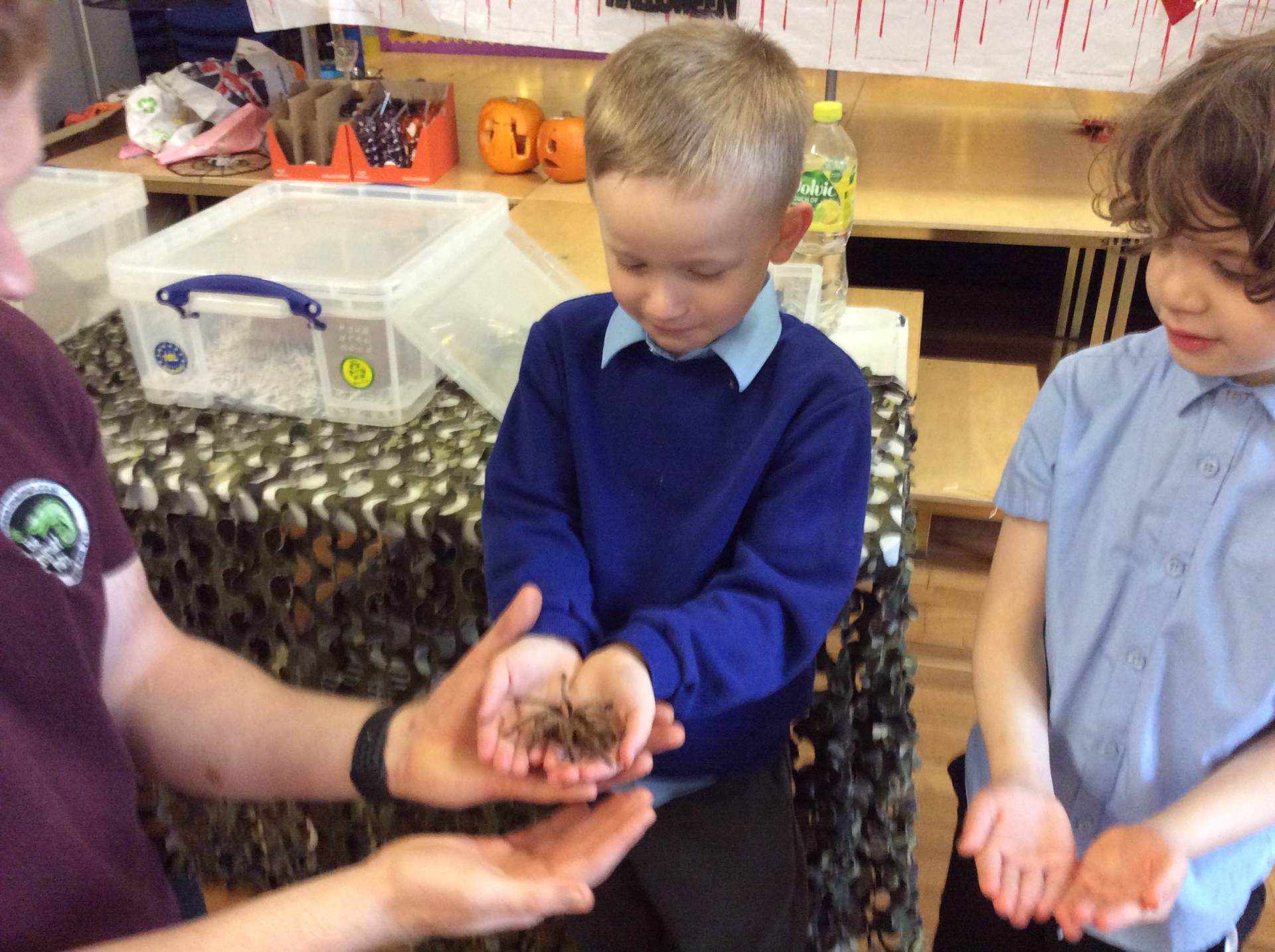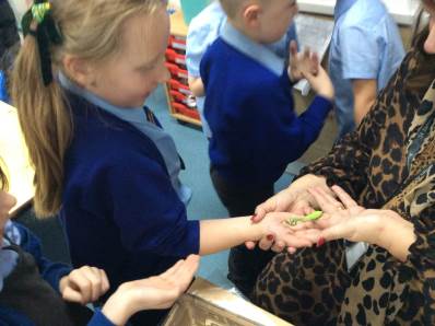 On Thursday, we explored rhythm and pitch in Music by copying patterns and working out the notes of a song on the glockenspiels. In the afternoon, we enjoyed our Good to be Green treat – meeting lots of fascinating creatures during a visit from the Animal Man! To end the day, everyone had a fantastic time dancing at the Halloween disco.