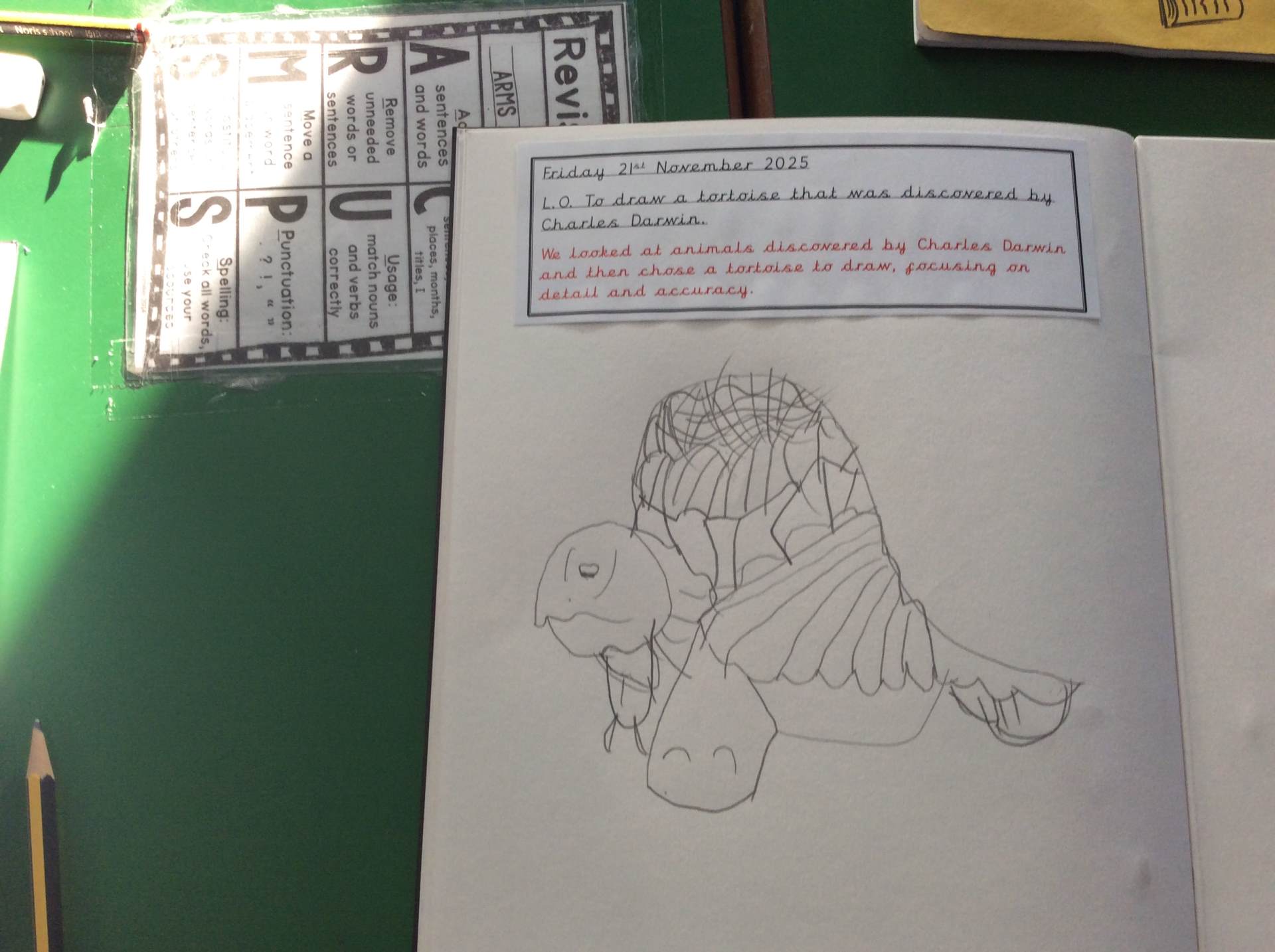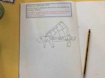 On Friday, in Art, the children learned how to draw a tortoise inspired by the species discovered on the Galápagos Islands by Charles Darwin. They carefully studied its features and created some wonderful artwork.