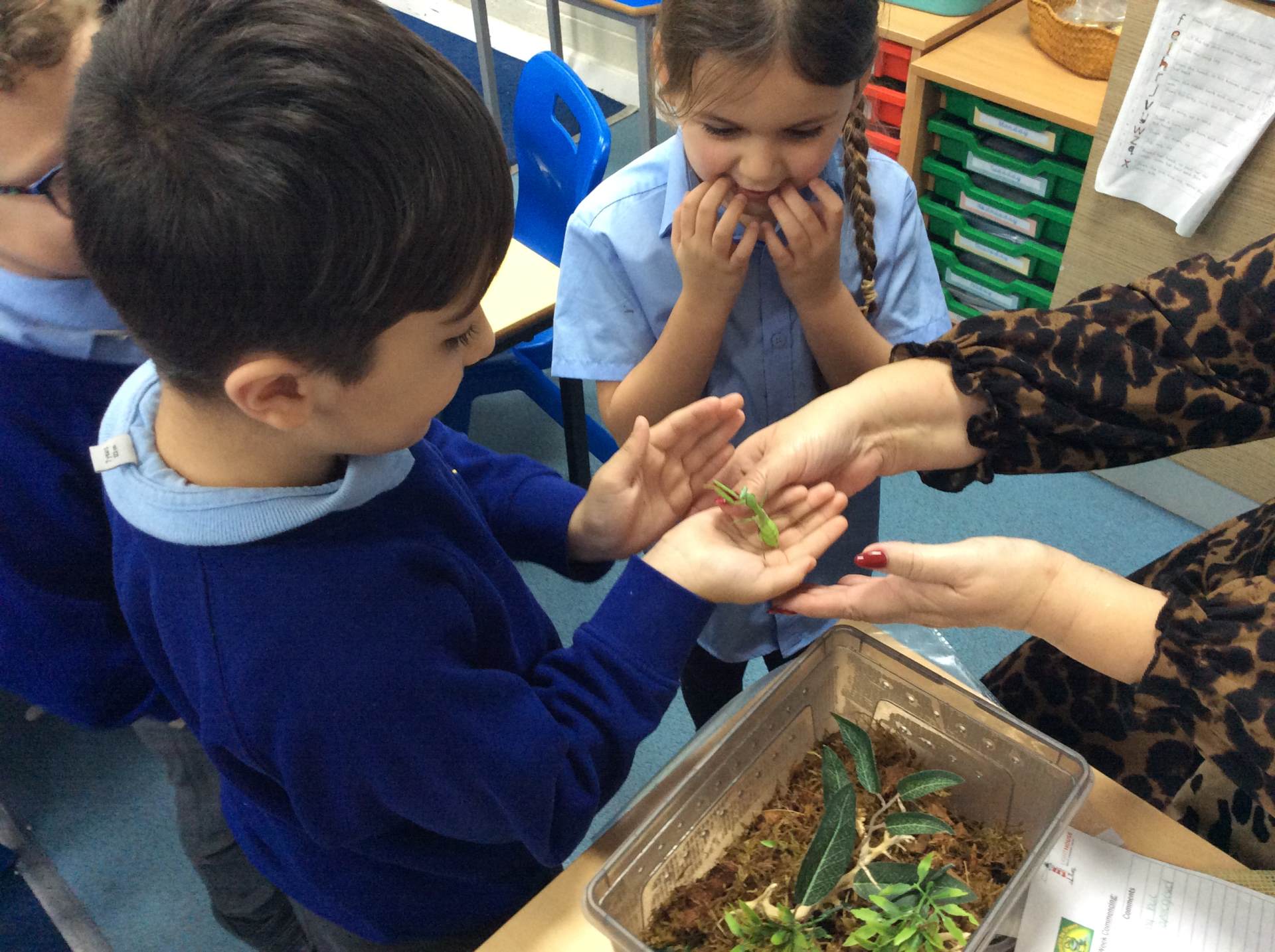 On Tuesday in Science, we took part in a fun experiment using Mrs Hodson’s praying mantis to help us investigate whether insects are attracted to sweet things. The children were fascinated and made some brilliant observations!