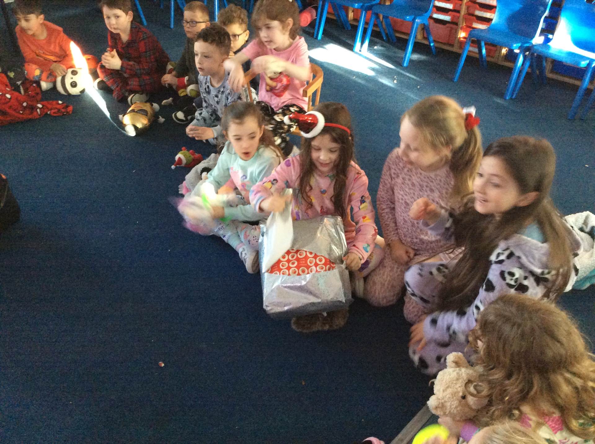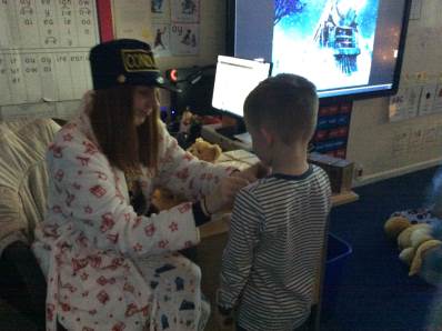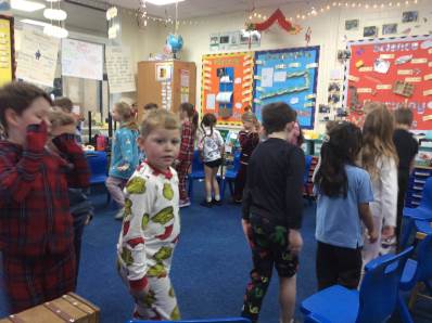Tuesday brought our Good to Be Green treat, which turned into a magical Polar Express Day. The children came to school in their pyjamas and enjoyed watching the film with popcorn and fizzy drinks. In the afternoon, we continued the celebrations with our Christmas party, playing pass the parcel, musical chairs and enjoying lots of festive fun.