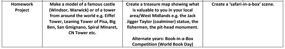 ✍️ Homework: Reading forms part of the weekly homework. Times tables can also be practised at home. Your children will have a login for TT Rockstars which will really help them to secure their times tables’ knowledge. Spellings will be given out every Wednesday and tested the following Monday. Additionally, there will be three projects set over the year for the children to complete at home with the support of an adult. We will send out further information about this nearer the time.